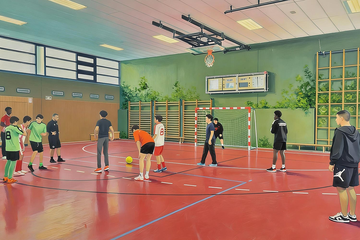 Das Fußballtraining findet in der Heinrich-Heine-Sporthalle statt. Im 14-tägigen Wechsel trainieren die unterschiedlichen Altersgruppen:
